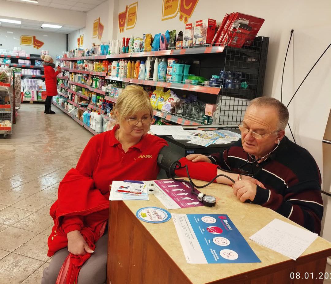 11 декабря 2025 года в рамках проекта “Слоним – здоровый город” Слонимским зональным ЦГЭ, Слонимской ЦРБ и УО “Слонимский государственный медицинский колледж” в магазине “Грошык”, расположенном по адресу ул.Брестская, 42А, прошла медико-профилактическая акция “Узнайте свое артериальное давление”. На акции всем желающим была предоставлена возможность измерить артериальное давление и оксигенацию крови, научиться самостоятельно измерять артериальное давление. Всем участникам акции раздавались информационно-образовательные материалы.Студент Слонимского медицинского колледжа провел анкетирование на тему “Как влияет атмосферное давление на артериальное давление и самочувствие”. Призываем вас заботиться о своем здоровье и контролировать показатели артериального давления.По данным ВОЗ, повышенное артериальное давление – одна из главных причин инфарктов, инсультов и других опасных состояний. Многие люди даже не подозревают, что их давление выше нормы, пока не столкнутся Врач-гигиенист (заведующий отделением) отделения ОЗ и СГМ Дервоедова Екатерина Васильевна