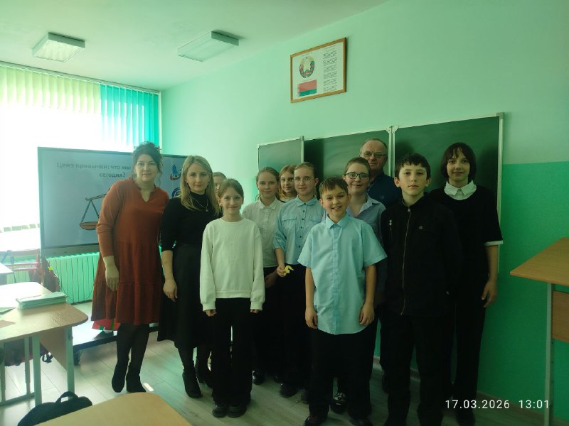 В рамках областного информационно-образовательного проекта «Вперед по дороге здоровья» 17 марта 2026 года в ГУО «Жировичская средняя школа Слонимского района» среди 15 учащихся 5 класса специалистами Слонимского ЦГЭ и Слонимской ЦРБ было проведено занятие “Цена привычки:что мы выбираем сегодня”. Цель: обобщить знания учащихся о пользе здорового образа жизни, помочь объективно взглянуть на свои привычки; Задачи: расширить знания детей о здоровом образе жизни; сформировать представление о значении здорового образа жизни в жизни человека. В ходе мероприятия ребята определили, какие привычки можно отнести к полезным, а какие к вредным, рассмотрели, к каким последствиям могут привести вредные привычки. Обсудили пользу правильного питания, закаливания, гигиены, режима дня. Была проведена игра “Полезно или вредно”. Каждый смог высказать свое мнение и обосновать свой ответ. Медицинские работники напомнили учащимся,что важно соблюдать баланс между учебой и отдыхом, гулять на свежем воздухе и минимизировать экранное время для сохранения здоровья глаз и нервной системы. Все учащиеся получили информационно-образовательные материалы и советы по здоровому образу жизни. Врач-гигиенист отдела гигиены Дервоедова Екатерина Васильевна